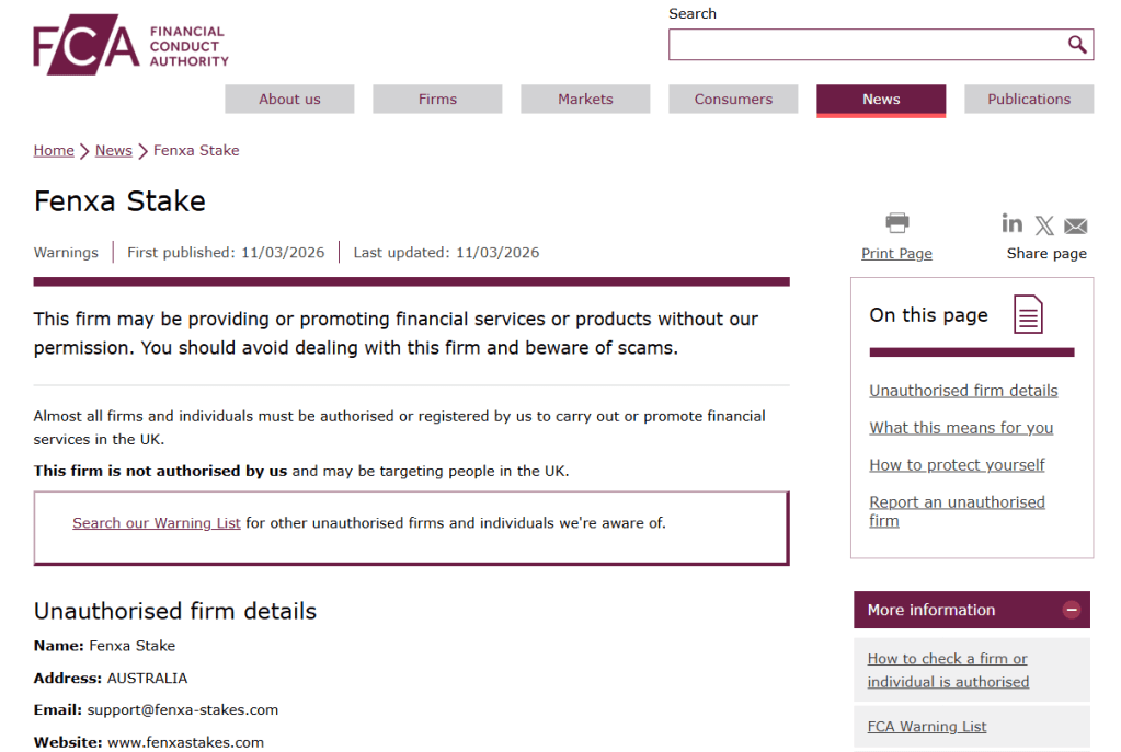Fenxa Stake FCA Warning: What the Regulator Actually Says